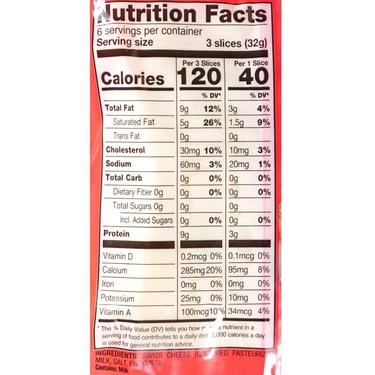 NATURAL SWISS CHEESE 18 THIN SLICES GLUTEN FREE